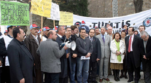 Seçim çalışmalarını ara vermeden sürdüren CHP Bursa Büyükşehir Belediye Başkan Adayı Sena Kaleli, CHP Osmangazi Belediye Başkan Adayı Denizhan Sezgin ile birlikte Türkiye Motorlu Taşıt İşçileri Sendikası (TÜMTİS) Bursa Şubesi'ni ziyaret etti. Şube binasında gerçekleştirilen ziyarette çok sayıda sarı otobüs çalışanı da hazır bulundu. Düzenlenen toplantıda konuşan TÜMTİS Genel Sekreteri Gürel Yılmaz, işçilerin sendikal haklarını kullandıktan sonra istifa etmeleri konusunda baskı gördüğünü ifade etti. İhale sona ermeden önce 10 çalışanın istifa etmedikleri için işten çıkarıldığını da ileri süren Yılmaz, diğer işçilerin de istifa etmemeleri durumunda işten atılacağı konusunda tehdit edildiğini vurguladı. 31 Mayıs 2008 tarihinde ise ihale süresinin dolmasıyla sendika üyesi 123 çalışanın iş akitlerinin feshedildiğini belirten Yılmaz, "1 Haziran tarihi itibariyle belediye binası önünde her pazartesi günleri sesimizi duyurabilmek için Büyükşehir Belediye Başkanı ile görüşme taleplerimiz oldu. Ama taleplerimize cevap vermedi. Bugün kendisi de mağdur edildiğini söyleyerek mağduru oynamaya başladı. Biz üyelerimizle birlikte anayasal haklarımızı kullandık. Bu haklarımıza saygı gösterilmesini istiyoruz" dedi.