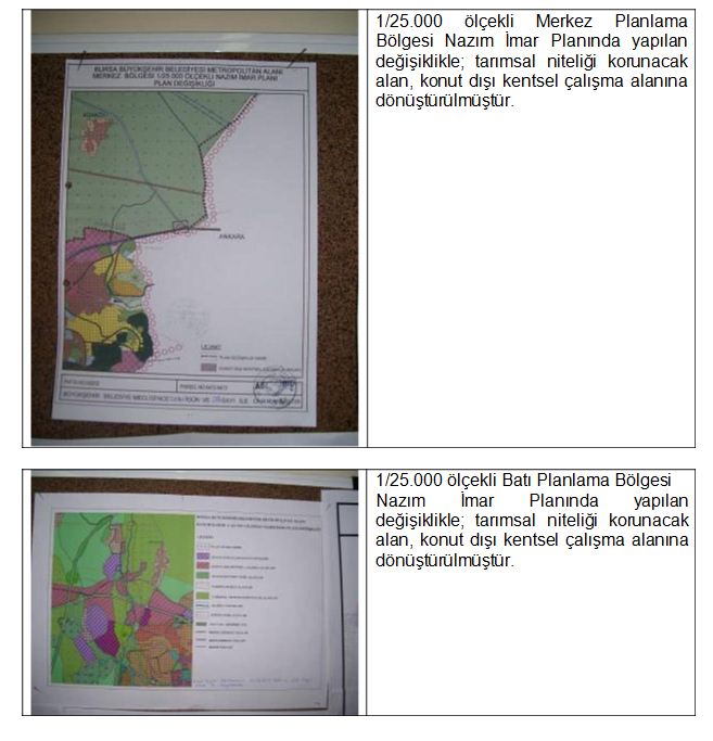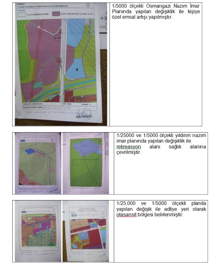 Bursa Büyükşehir Belediyesi tarafından 1/25.000 ve 1/5000 ölçekli Nazım İmar Planları onaylanarak kentimizin 2020 yılına göre projeksiyonları yapılmıştır. Ancak onaylanan bu planların bilimsellikten uzak, gerekli analiz ve etüt çalışmaları yapılmadan hazırlanması birçok soruna sebep olmuştur. B u planlar ve bu planlar üzerinde yapılan değişikliklerle kent ve kentli çıkarları hiçe sayılarak, kişiye özel uygulamalar yapılmıştır.
