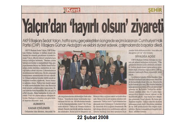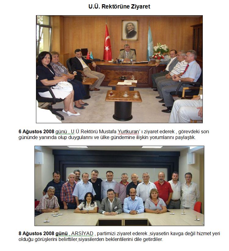 Partimize yeni üye olan ve Gn. Bşk. Deniz BAYKAL tarafından rozetleri takılan Uludağ Üniversitesi Akademisyenleri, geçen dönem rektörü Prof. Dr.Mustafa YURTKURAN’ın önderliğinde CHP İl Başkanlığı’nı ziyaret ederek,parti yöneticileri ile bir toplantı yaptı.