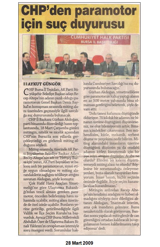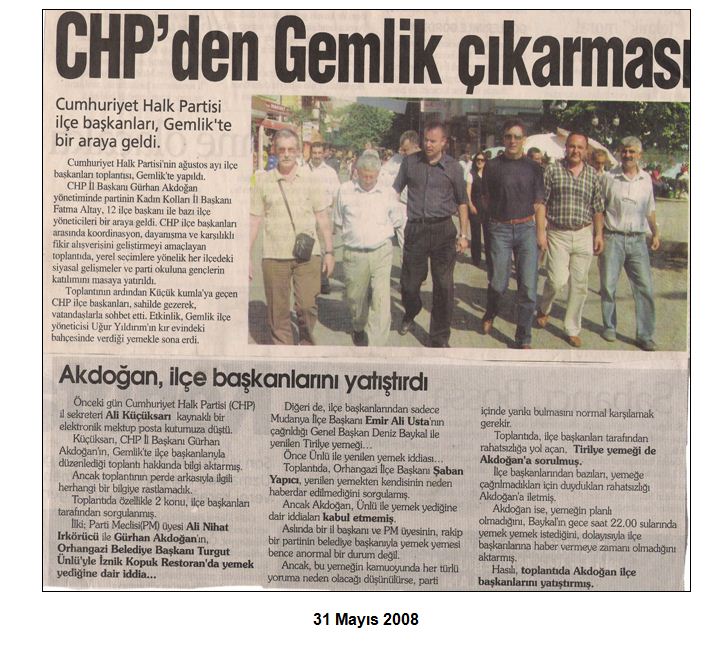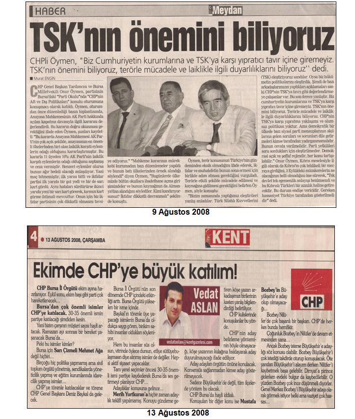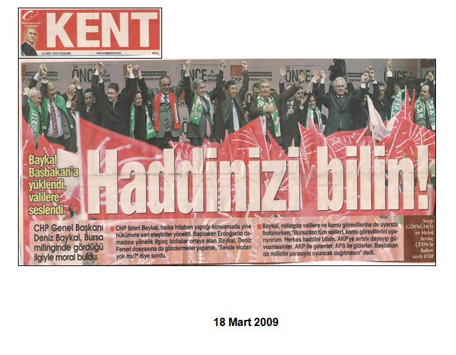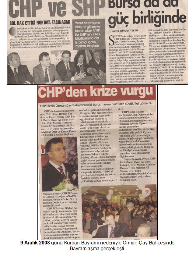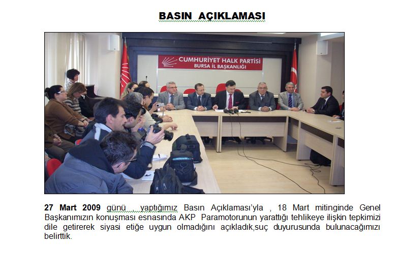 - Nilüfer Belediye Başkanı Mustafa BOZBEY’in Cumhuriyet Mitinglerinde dağıttığı Bayrak ve Yürüyüş için açılan soruşturma ile ilgili Basın toplantısı ile kınanarak Adliye ve Valilik Makamlarına gerekli itirazlar yapıldı.