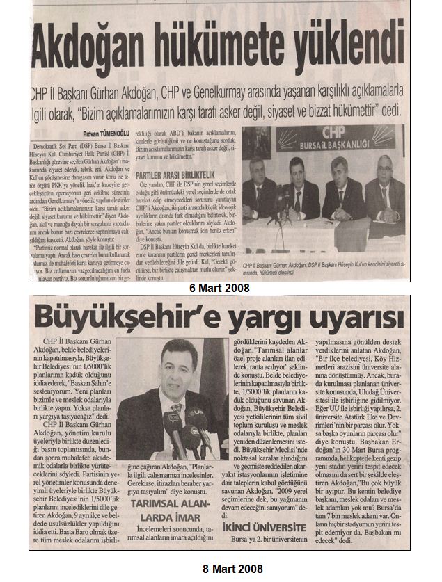- 1/5.000’lik Planlarla ilgili Basın Açıklaması yapıldı. Büyükşehir Belediyesi’ne, bu konuya ve diğer değişik planlara ilişkin ayrı ayrı sekiz itiraz yapıldı.