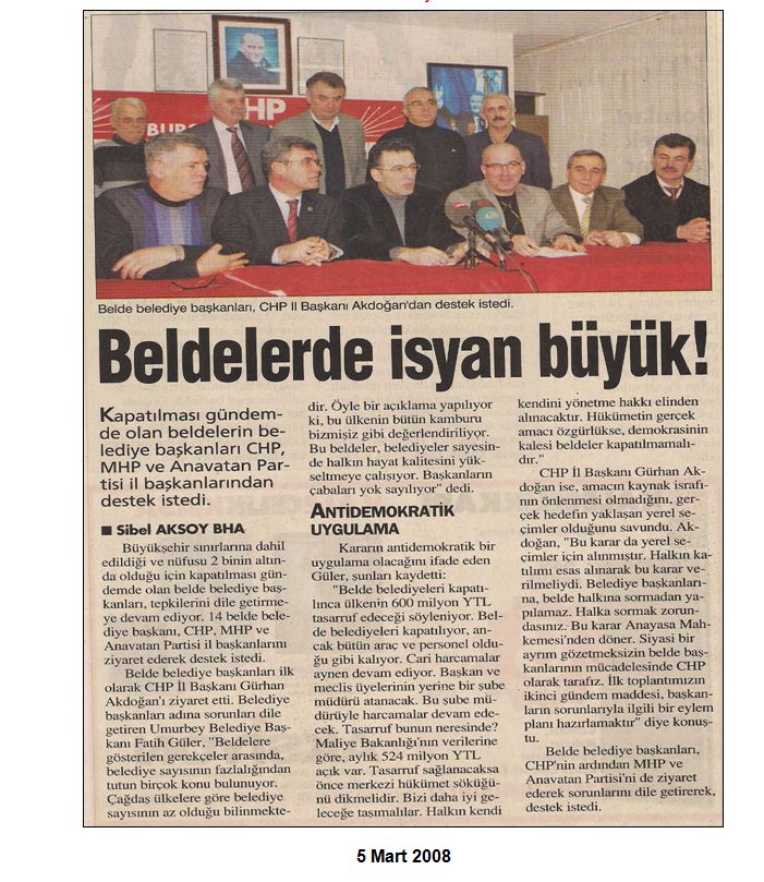 - Belde Belediyeleri’nin kapatılmasına ilişkin Basın Açıklaması yapıldı.
