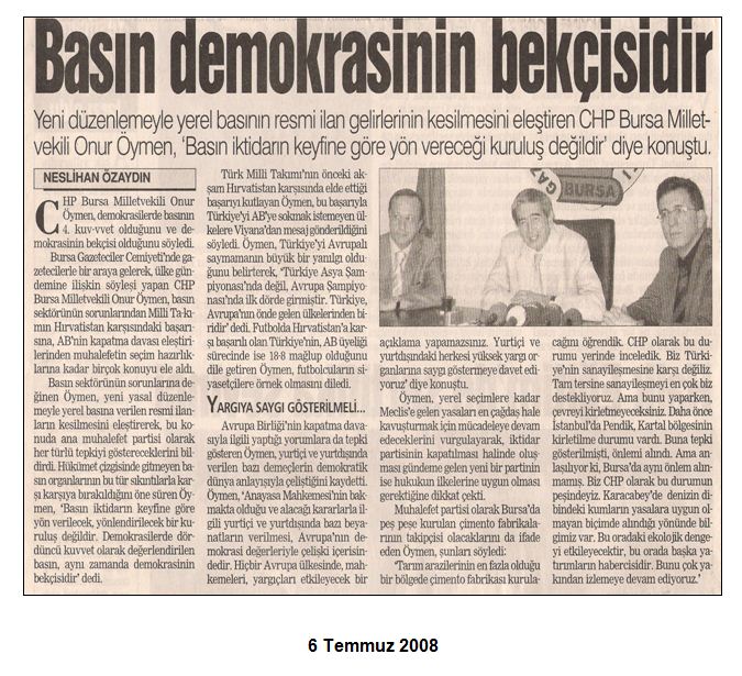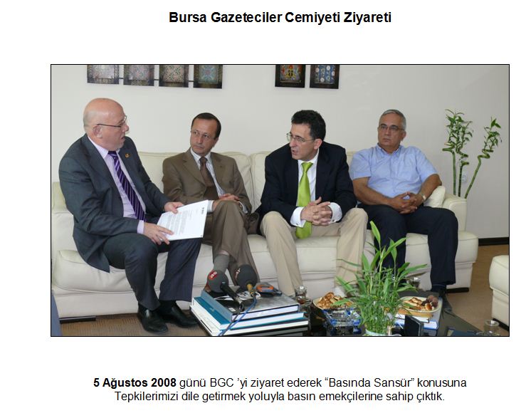 - Yerel Basın’la ilgili reklam ilanı gelirlerinin kesilmesi hususunda görüş alışverişinde bulunmak amacıyla Bursa Gazeteciler Cemiyeti ziyaret edildi. Konuya ilişkin Basın Açıklaması yapıldı ve konu TBMM’ ne taşındı.