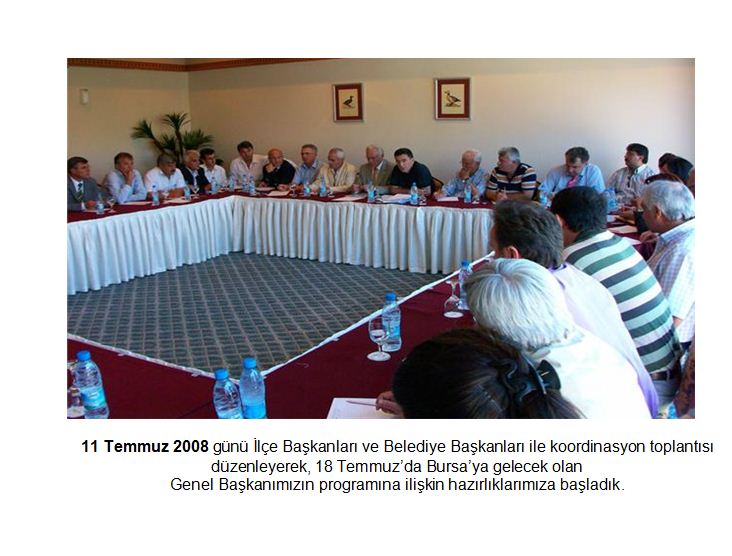 - Tüm Belediye Meclisi Üyeleri, İl Genel Meclisi Üyeleri ve Belediye Başkanları ile toplanarak Yerel Yönetimlerin değerlendirmesi yapıldı ve yaşanan sorunlara ilişkin çözüm önerileri üzerinde fikirler değerlendirildi.