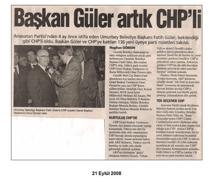 - Umurbey Belediye Başkanı M.Fatih GÜLER’in CHP’ye katılması sağlandı.
