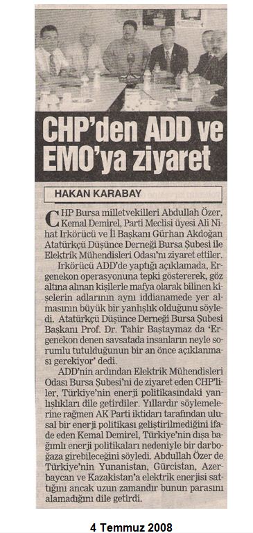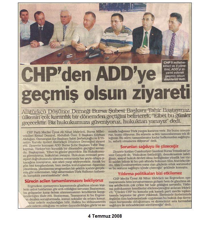 - ADD ve Cumhuriyet Gazetesi’ni ziyaret ederek, Ergenekon’la ilgili gözaltına alınmalar konusundaki duygu ve düşüncelerimizi paylaştık.