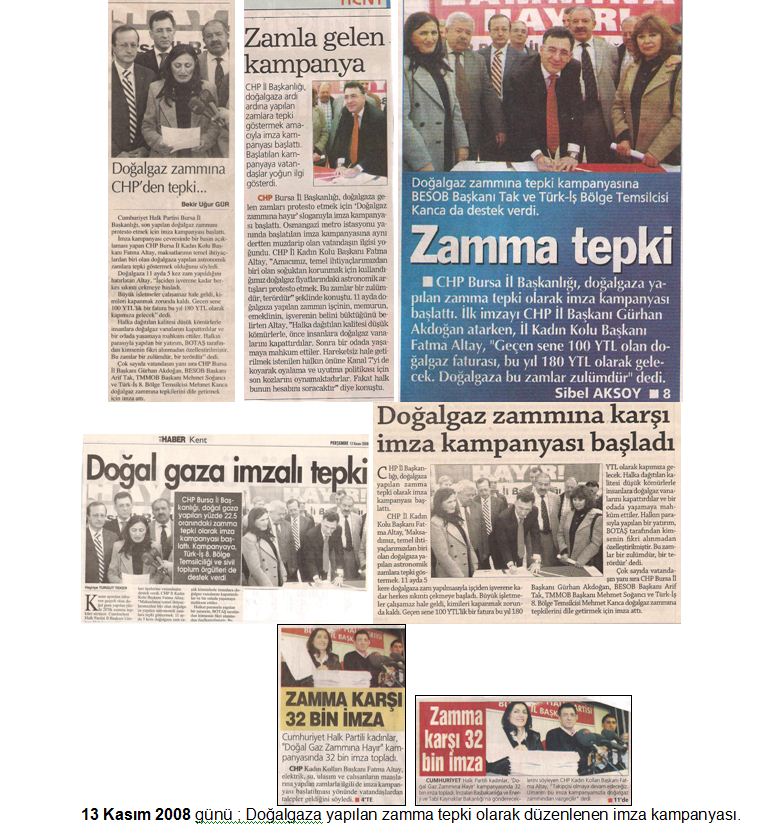 - Doğalgaz zammına itiraz amacıyla başlatılan “İmza Kampanyası”nda 32.000 imza toplanarak Enerji Bakanlığı’na gönderildi.